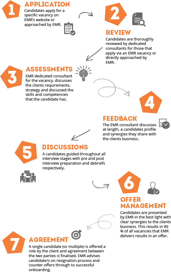 The journey of a candidate is often misunderstood. Candidates often become clients, working with us to utilise EMR's trusted advice. EMR’s process is considered efficient and knowledge of the market as insightful. It doesn’t stop there – EMR continues to learn and optimise the way the firm operates. This balance gives EMR a unique rapport with you over time as the relationship evolves.